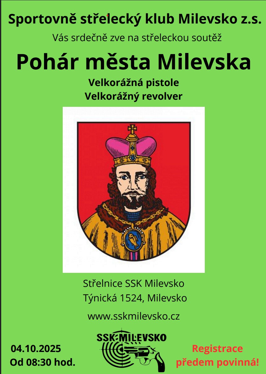 Tuto sobotu 12.10.2024 pořádáme u nás na střelnici střelecký závod Pohár města Milevska. Přijďte si zastřílet a zasoutěžit. Čekají Vás hodnotné ceny, prima kolektiv a pohodová atmosféra. Budeme se na Vás těšit! SSK Milevsko